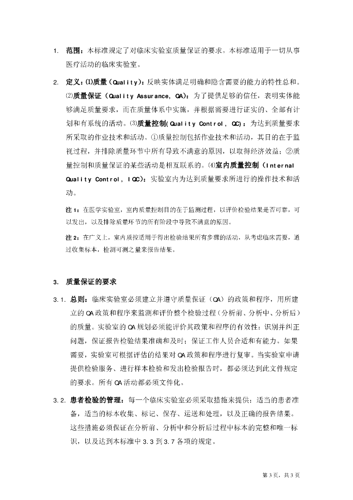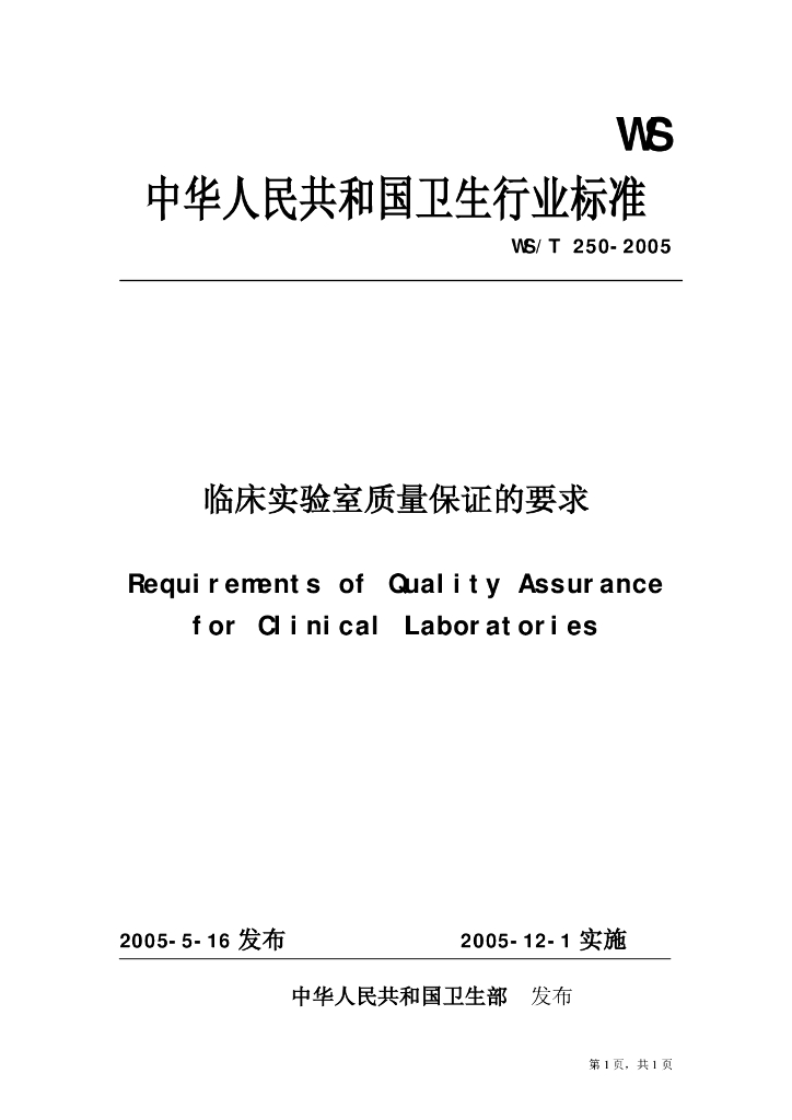 WS/T 250-2005 临床实验室质量保证的要求