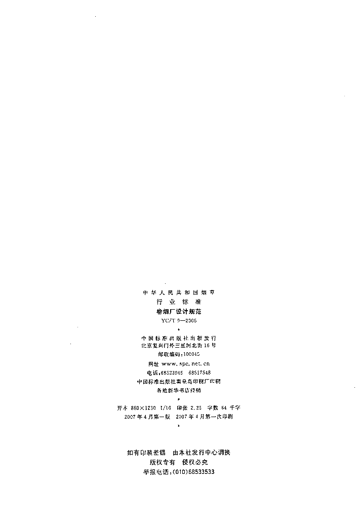 YC/T 9-2006 卷烟厂设计规范