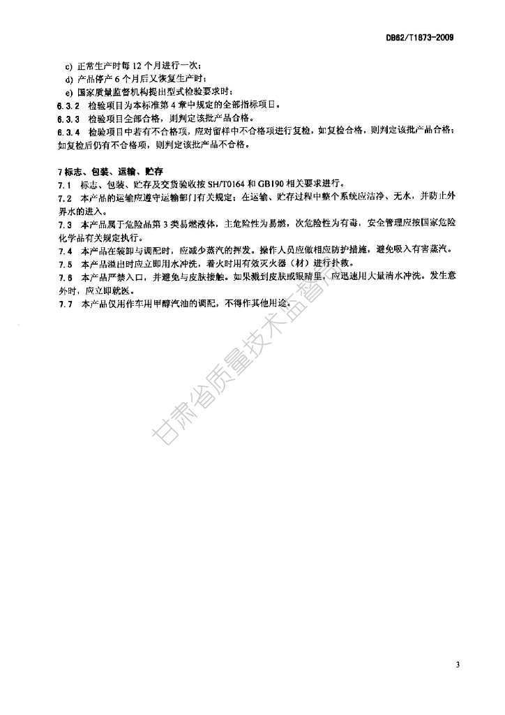DB62/T 1873-2009 车用甲醇汽油变性醇