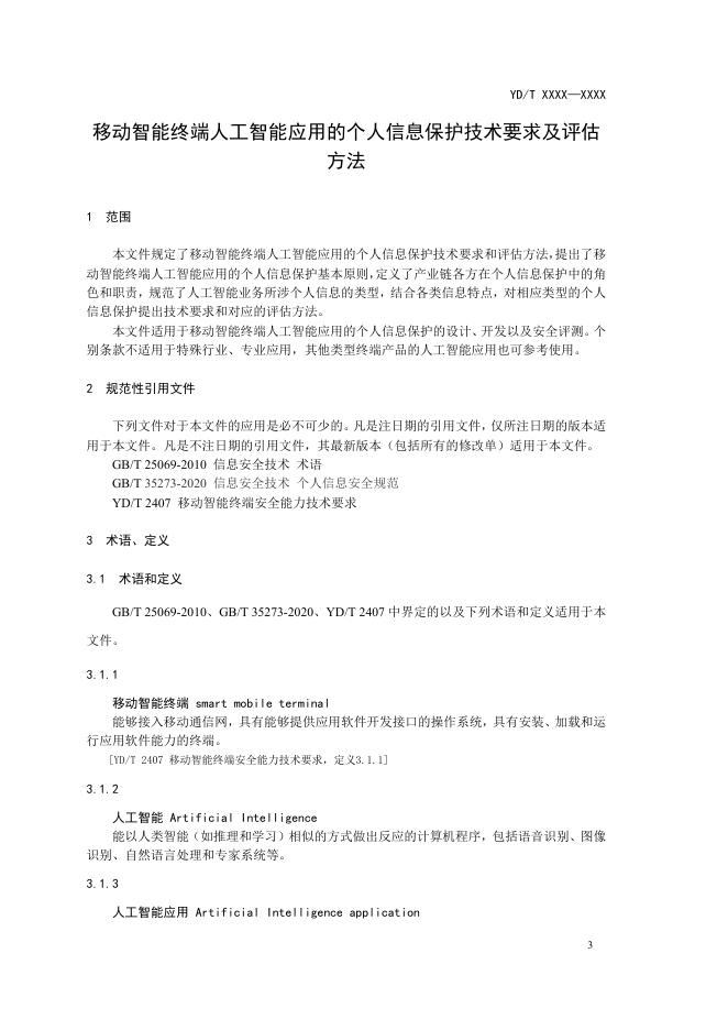 YD/T 4994-2024 移动智能终端人工智能应用的个人信息保护技术要求及评估方法