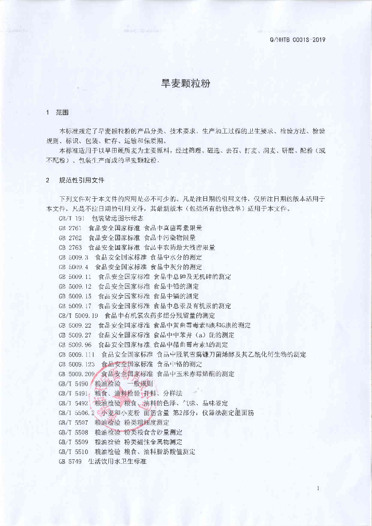 Q/HHTB 0001S-2019 旱麦颗粒粉