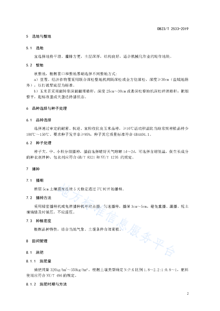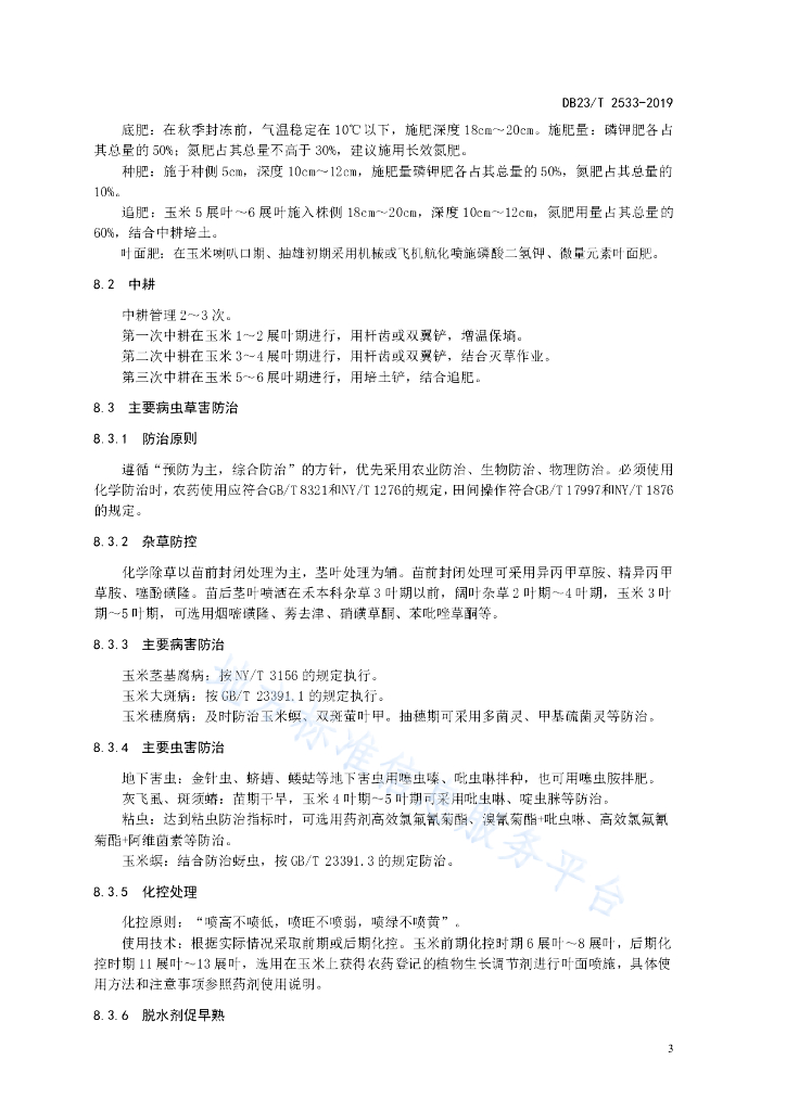 DB23/T 2533-2019 温凉半湿润区玉米机械粒收栽培技术规程