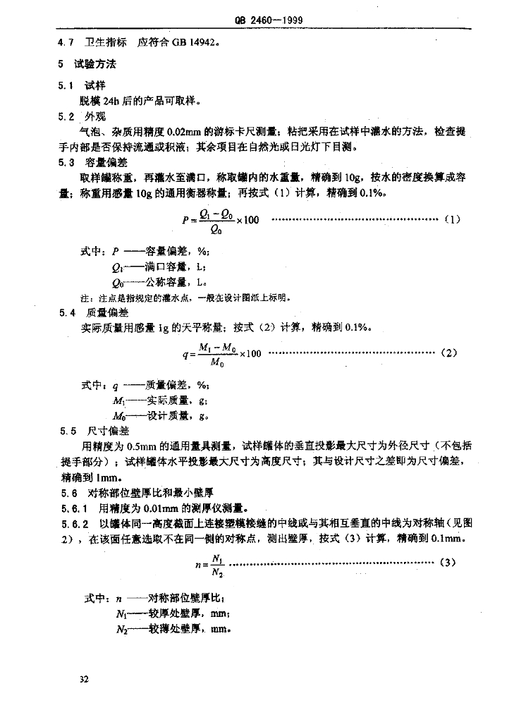 QB 2460-1999 聚碳酸酯(PC)饮用水罐
