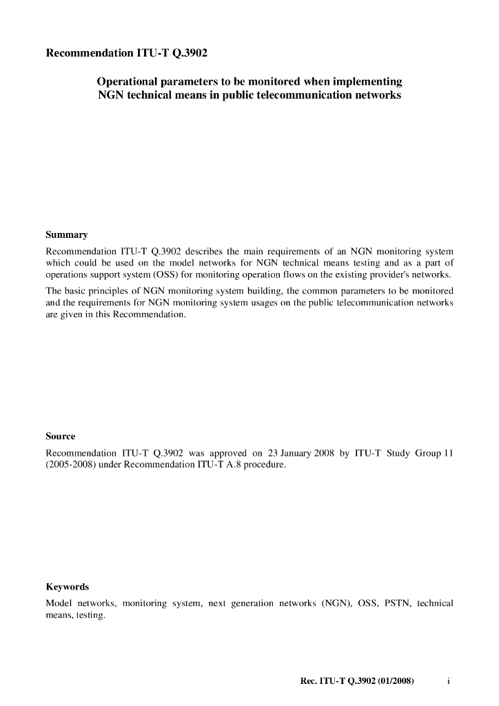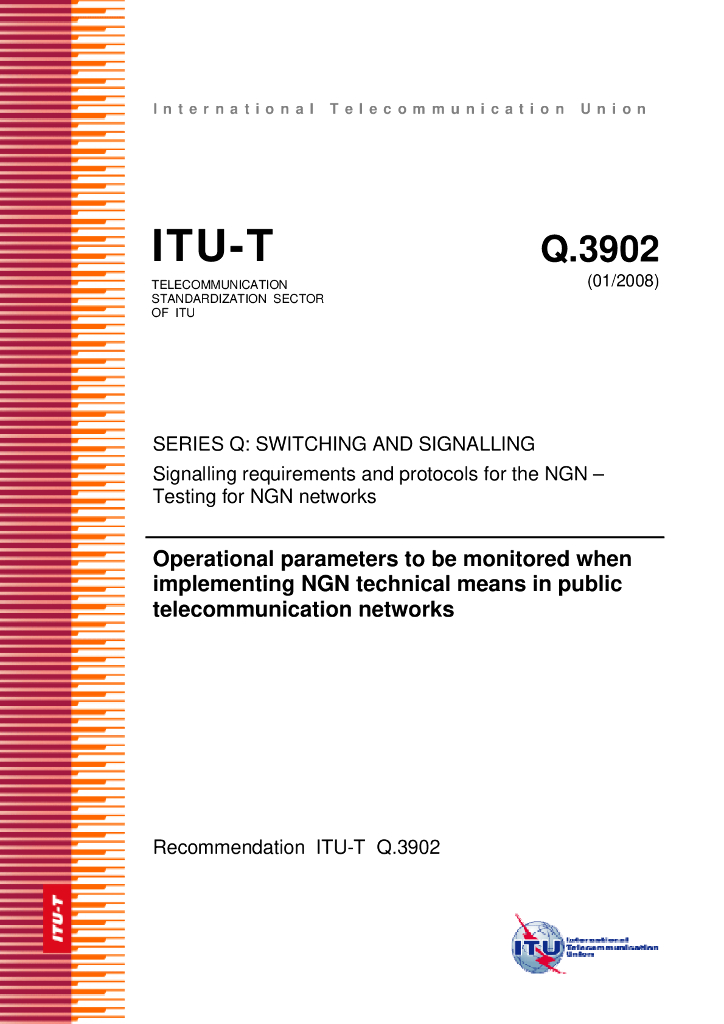 ITU-T Q.3902-2008 公共通信网络中当执行NGN技术方法时监控的运行参数