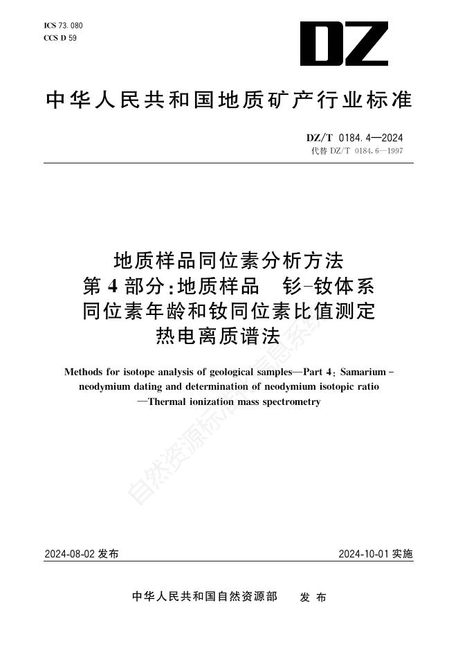 DZ/T 0184.4-2024 地质样品同位素分析方法 第4部分:地质样品 钐-钕体系同位素年龄和钕同位素比值测定 热电离质谱法