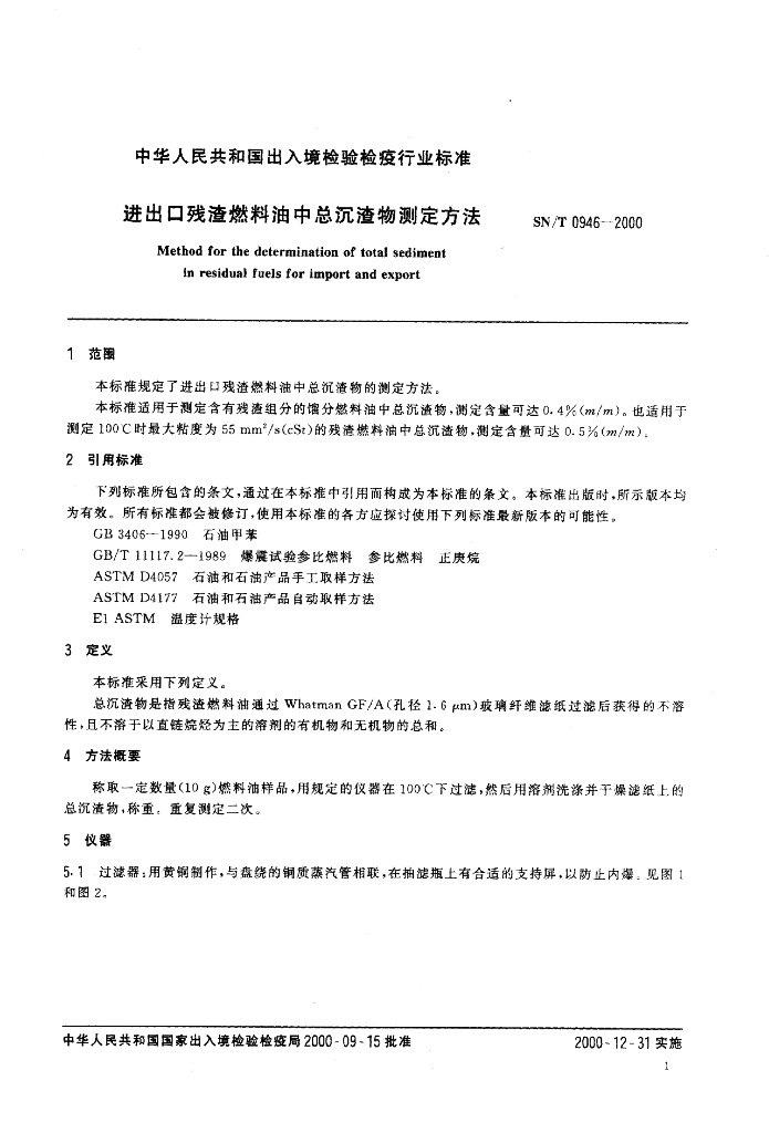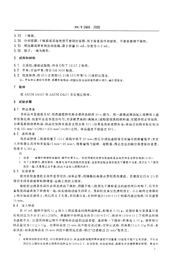 SN/T 0946-2000 进出口残渣燃料油中总沉渣物测定方法