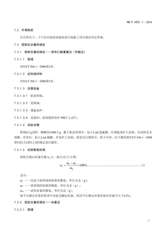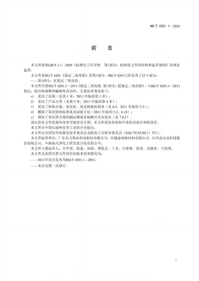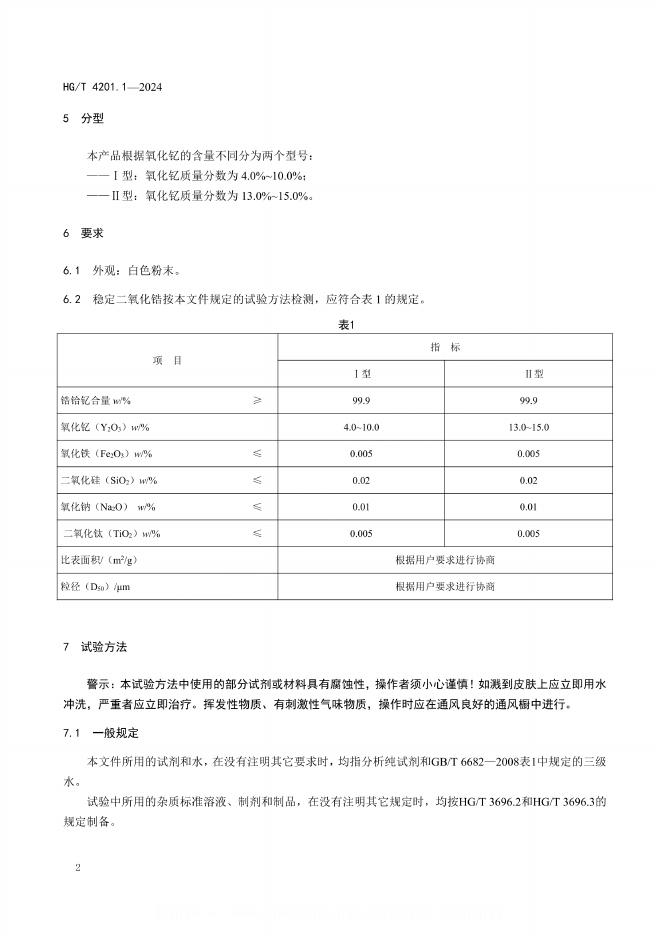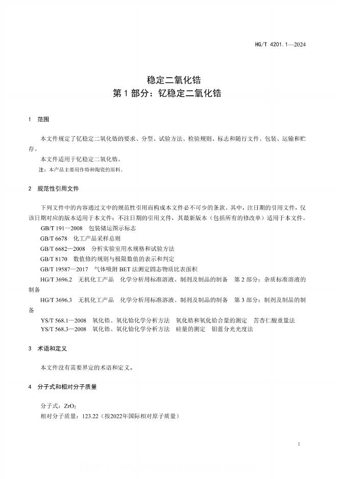 HG/T 4201.1-2024 稳定二氧化锆 第1部分:钇稳定二氧化锆