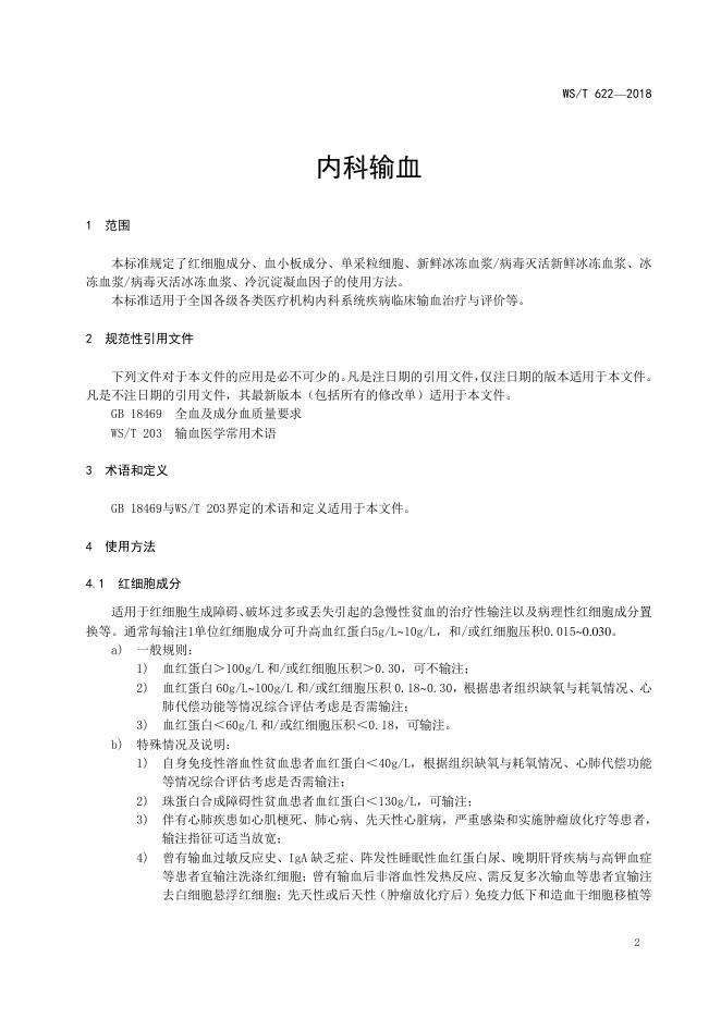 WS/T 622-2018 内科输血