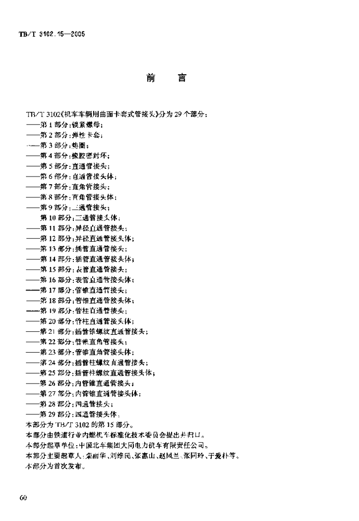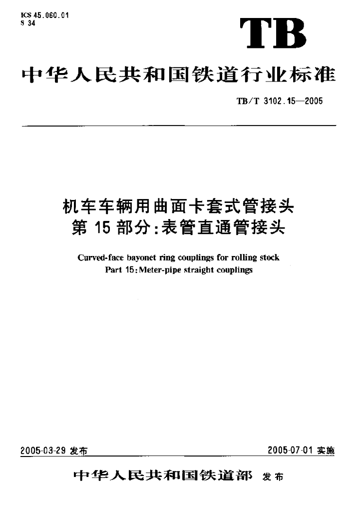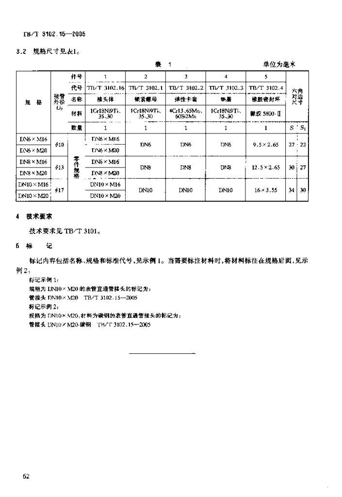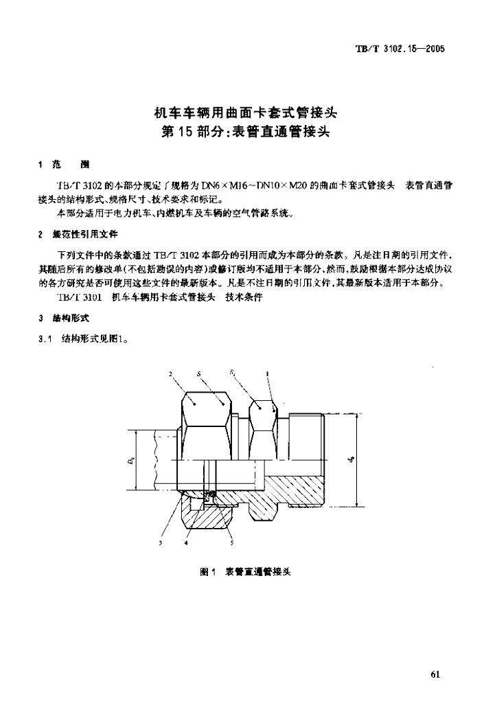 TB/T 3102.15-2005 机车车辆用曲面卡套式管接头 第15部分:表管直通管接头