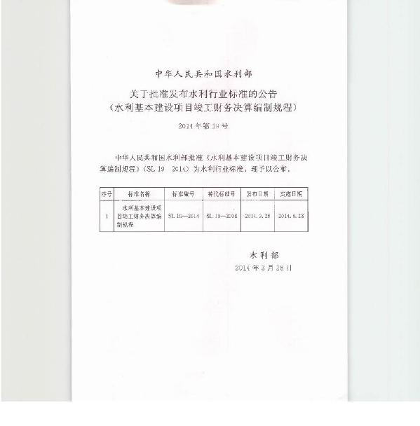 SL/T 19-2014 水利基本建设项目竣工财务决算编制规程