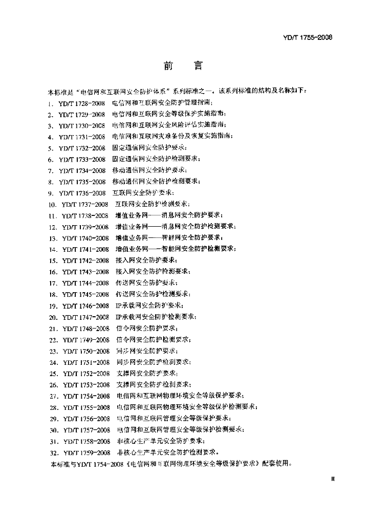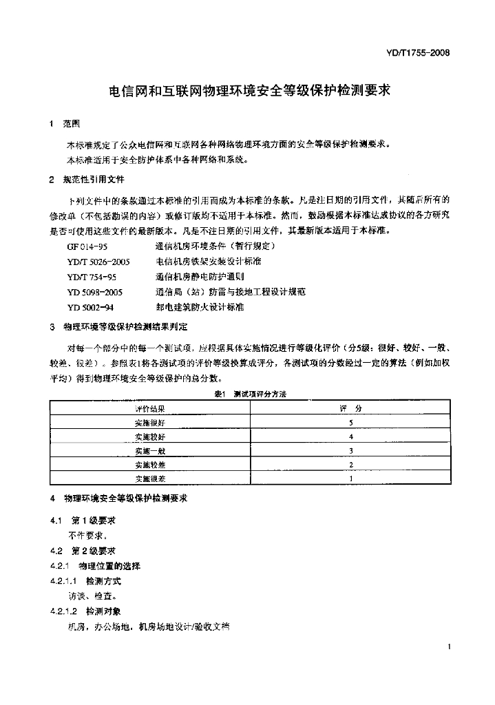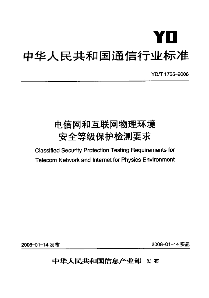 YD/T 1755-2008 电信网和互联网物理环境安全等级保护检测要求