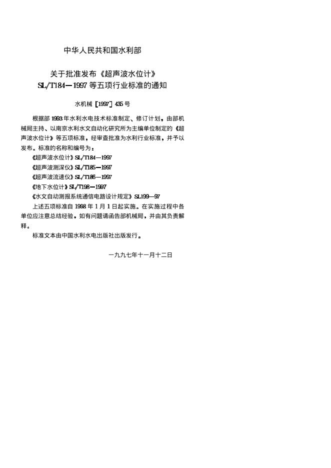 SL/T 199-1997 水文自动测报系统通信电路设计规定