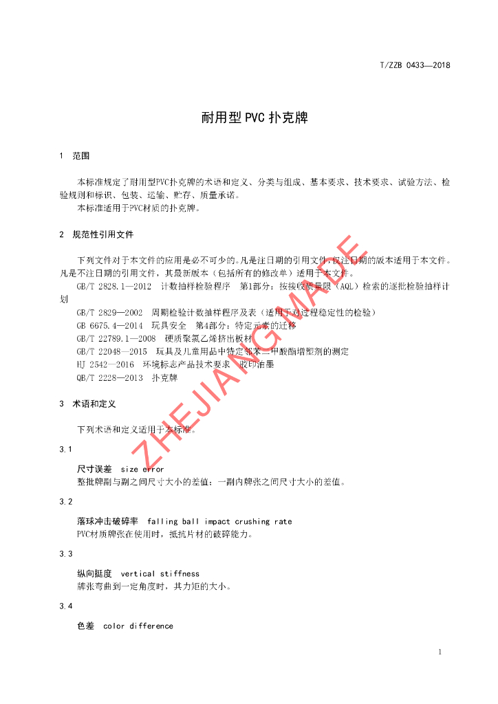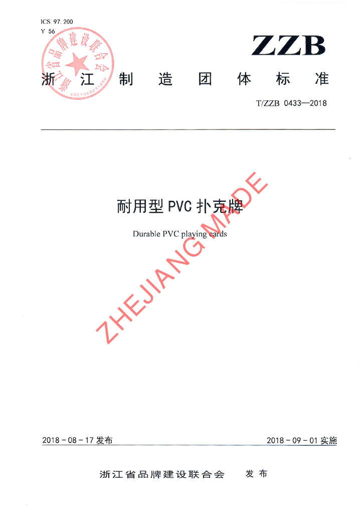 宁波三A集团有限公司、宁波市标准化研究院、宁波市产品质量监督检验研究院、宁波文具行业协会、浙江宾王扑克有限公司、浙江正点实业有限公司