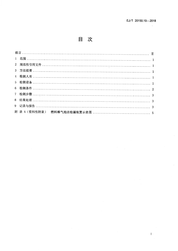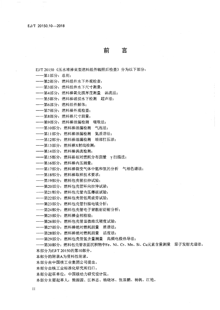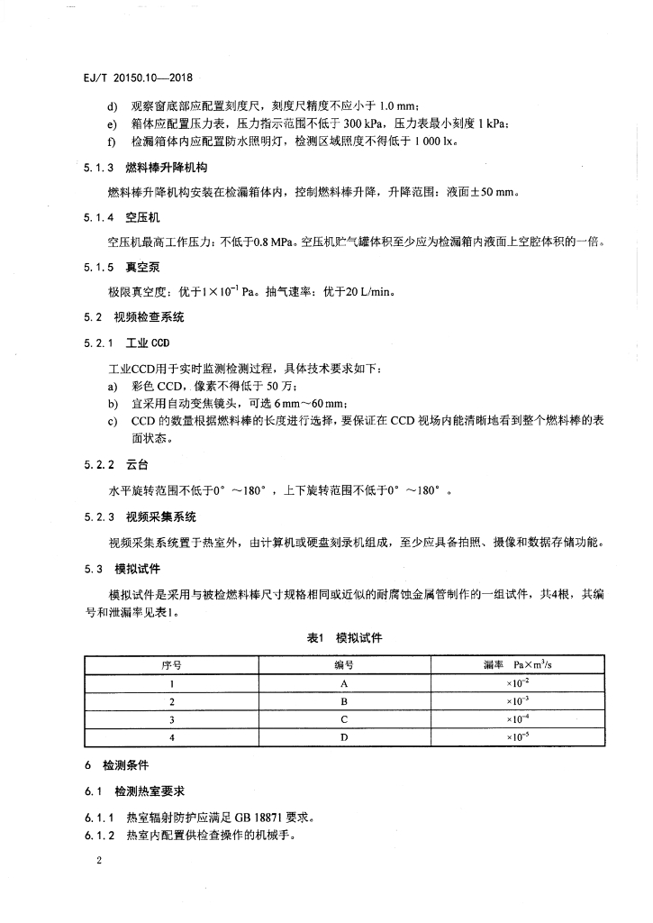 EJ/T 20150.10-2018 压水堆棒束型燃料组件辐照后检查 第10部分:燃料棒泄漏检测 气泡法