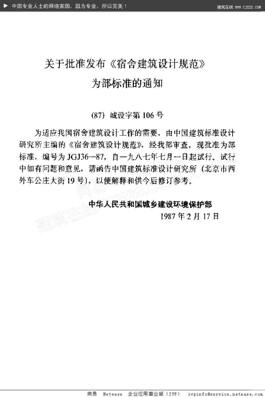 JGJ 36-1987 宿舍建筑设计规范