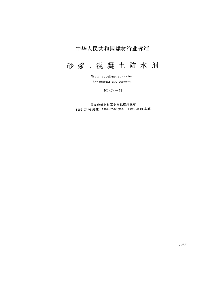 JC 474-1992 砂浆、混凝土防水剂