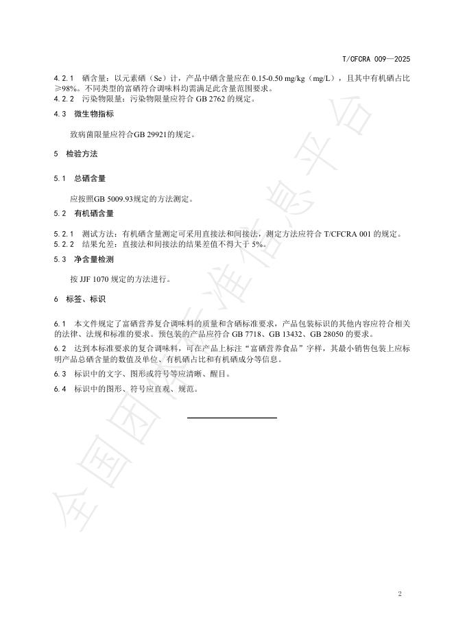 T/CFCRA 009-2025 富硒营养复合调味料