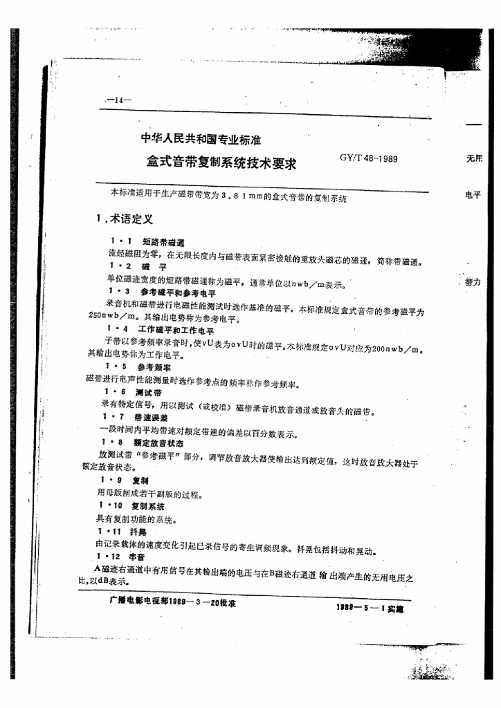 GY/T 48-1989 盒式音带复制系统技术要求
