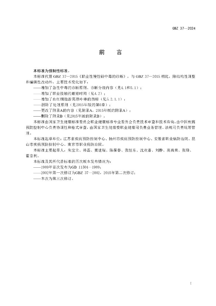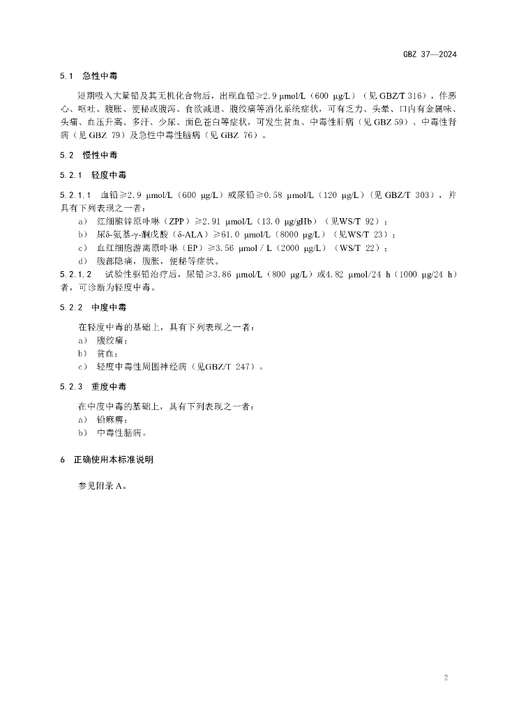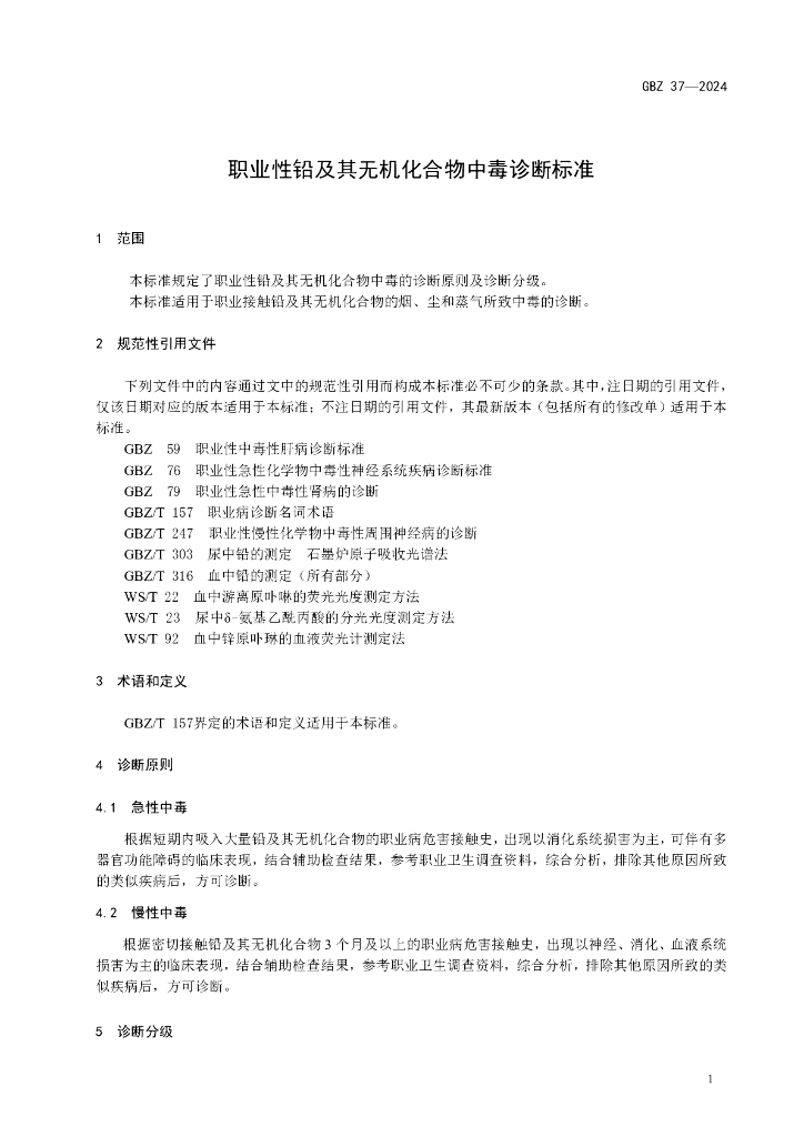 GBZ 37-2024 职业性铅及其无机化合物中毒诊断标准