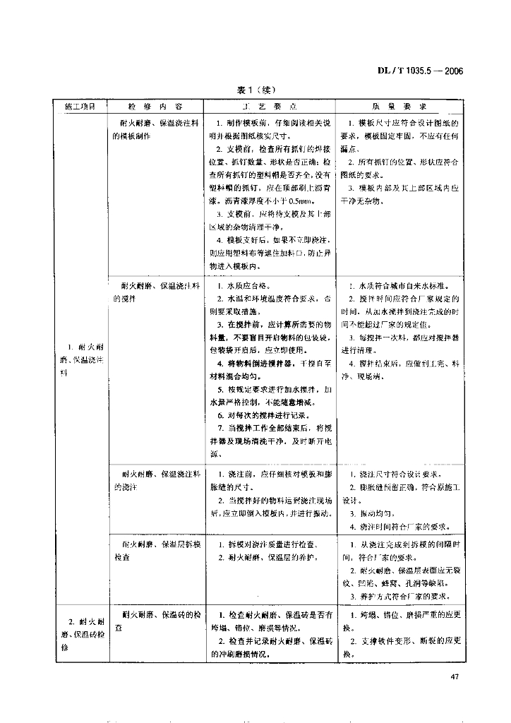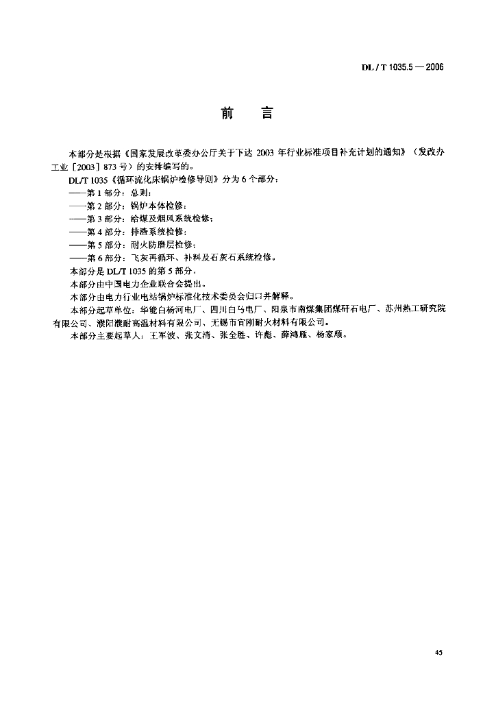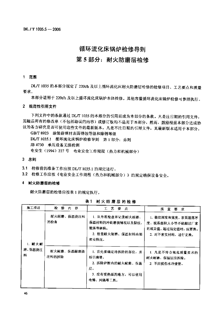 DL/T 1035.5-2006 循环流化床锅炉检修导则 第5部分 耐火防磨层检修