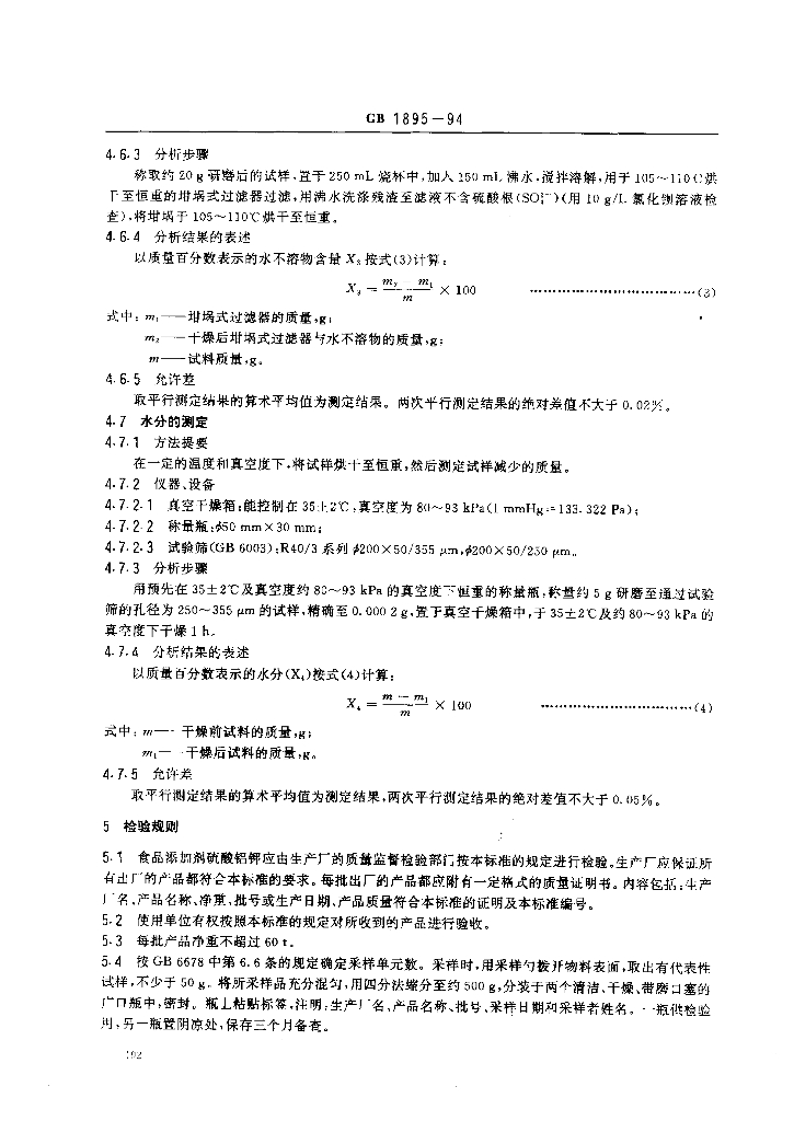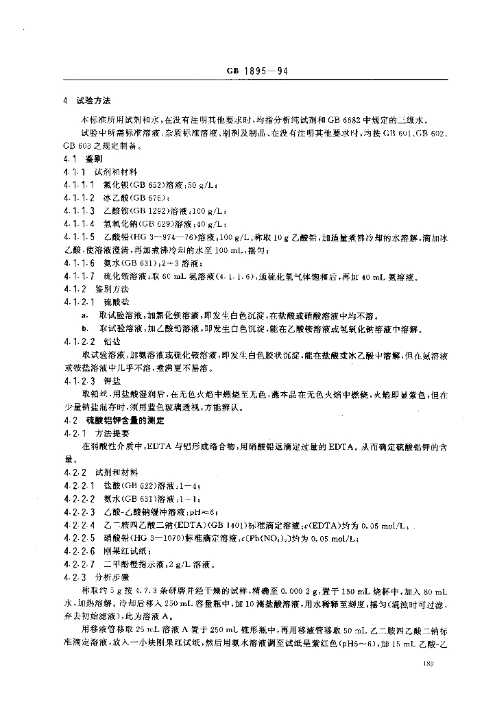 GB 1895-1994 食品添加剂 硫酸铝钾(钾明矾)