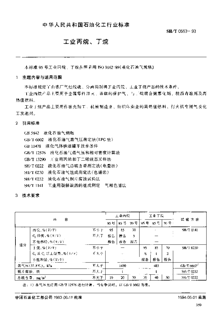 SH/T 0553-1993 工业丙烷、丁烷