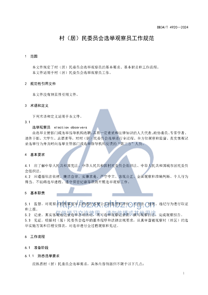 DB34/T 4920-2024 村(居)民委员会选举观察员工作规范