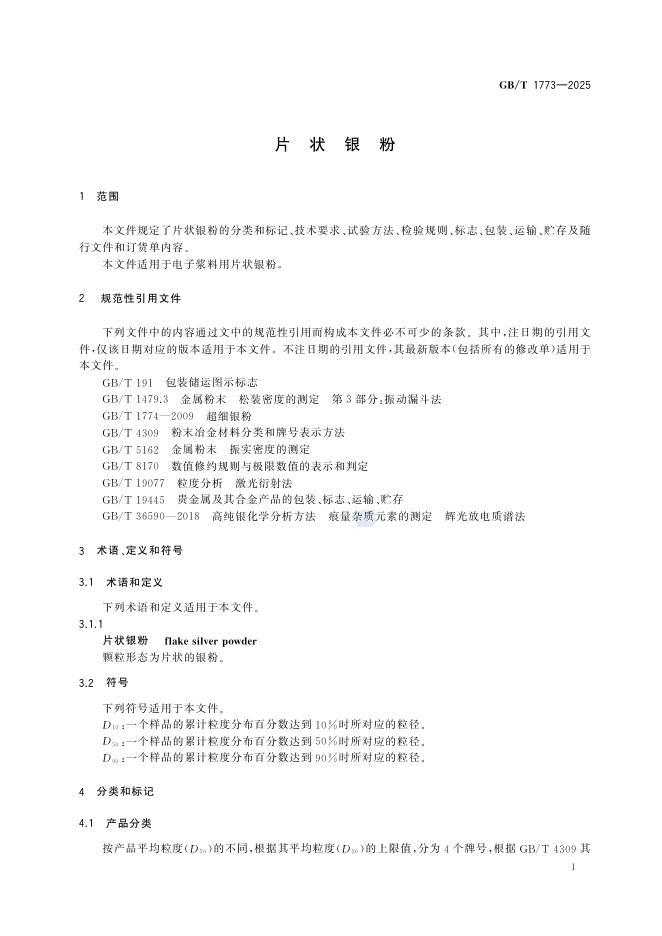 GB/T 1773-2025 片状银粉