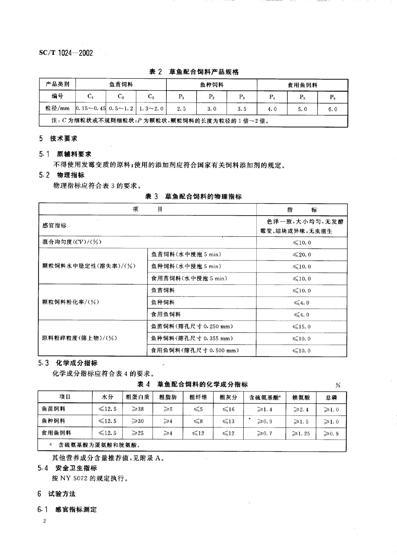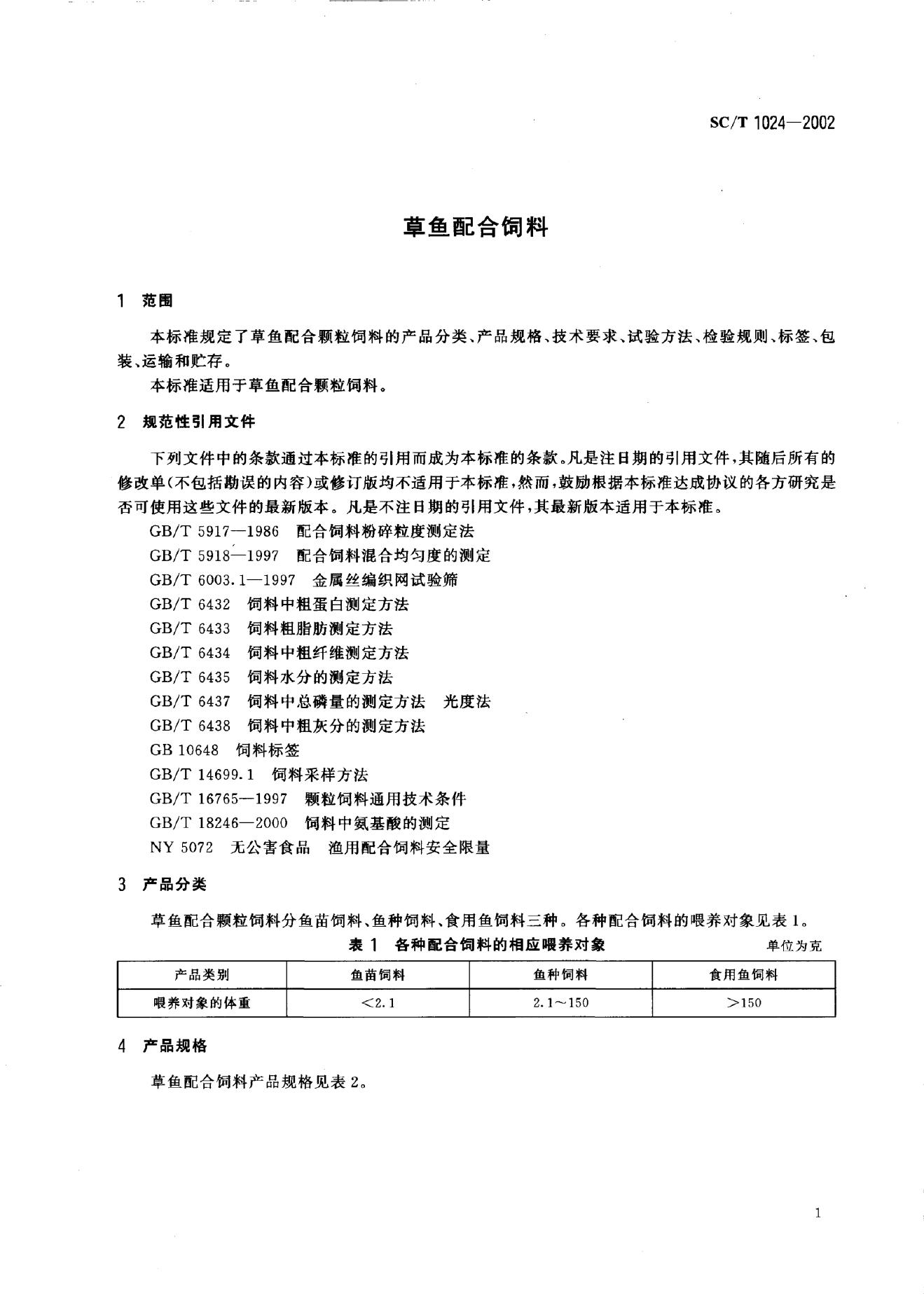 SC/T 1024-2002 草鱼配合饲料