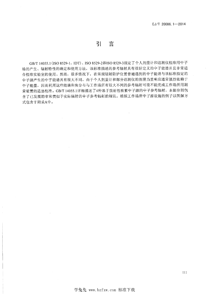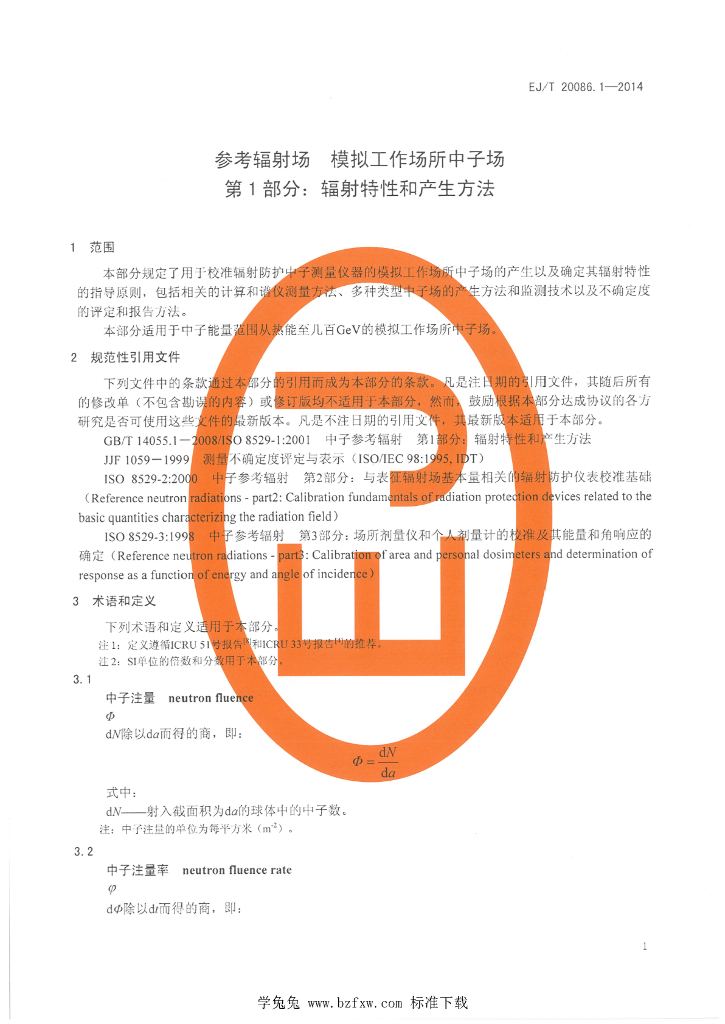 EJ/T 20086.1-2014 参考辐射场 模拟工作场所中子场 第1部分:辐射特征和产生方法