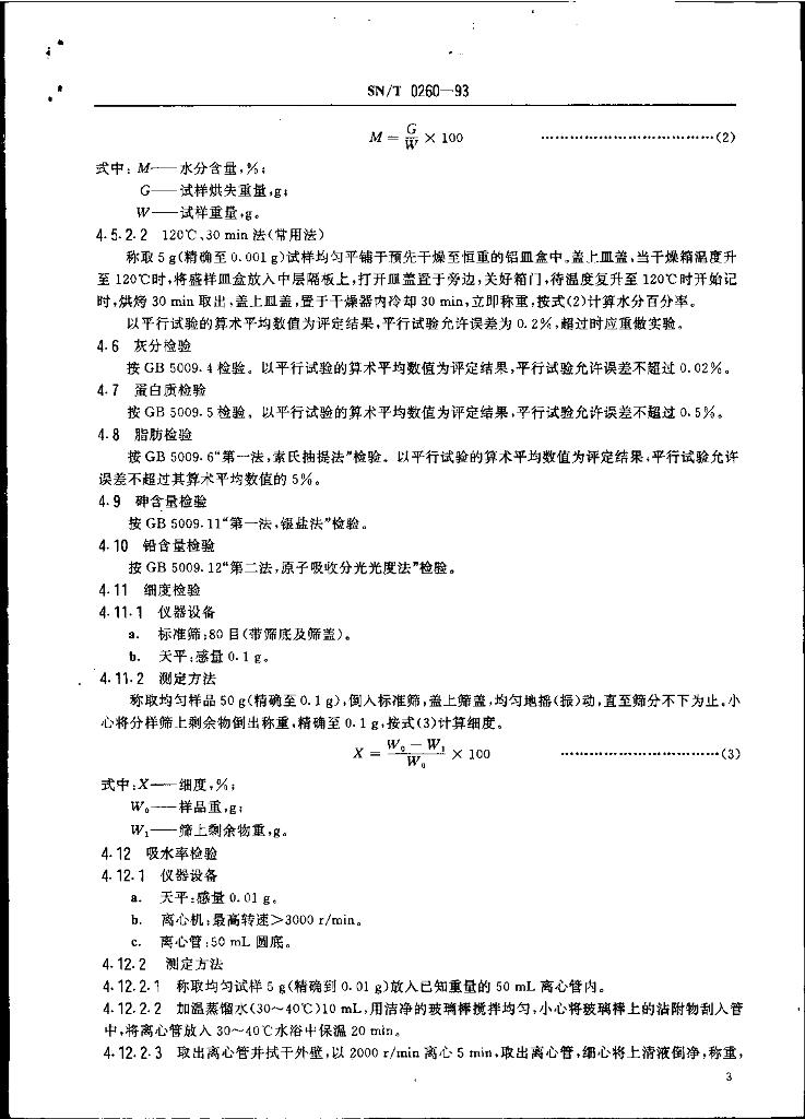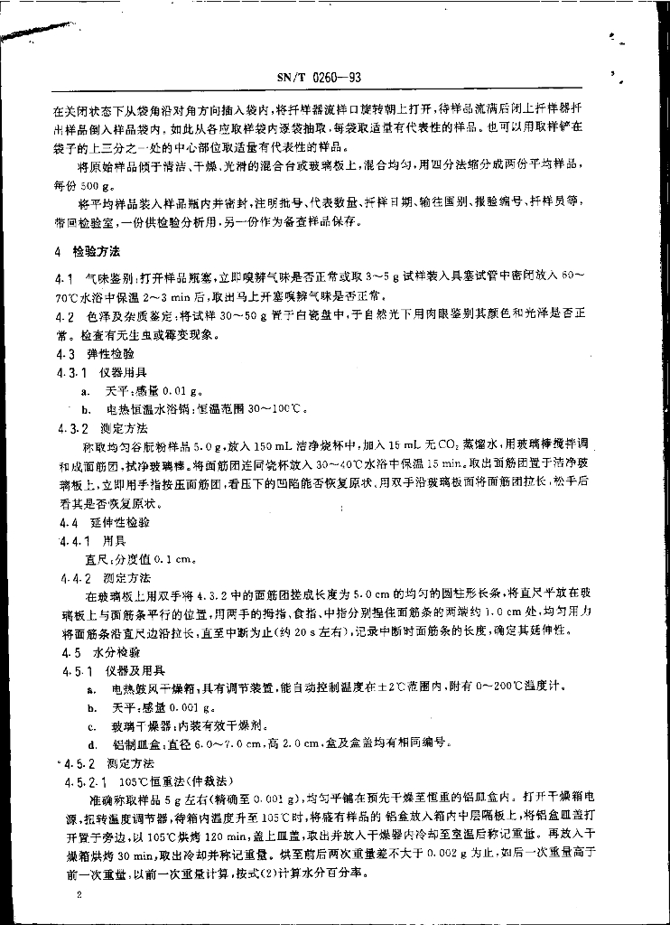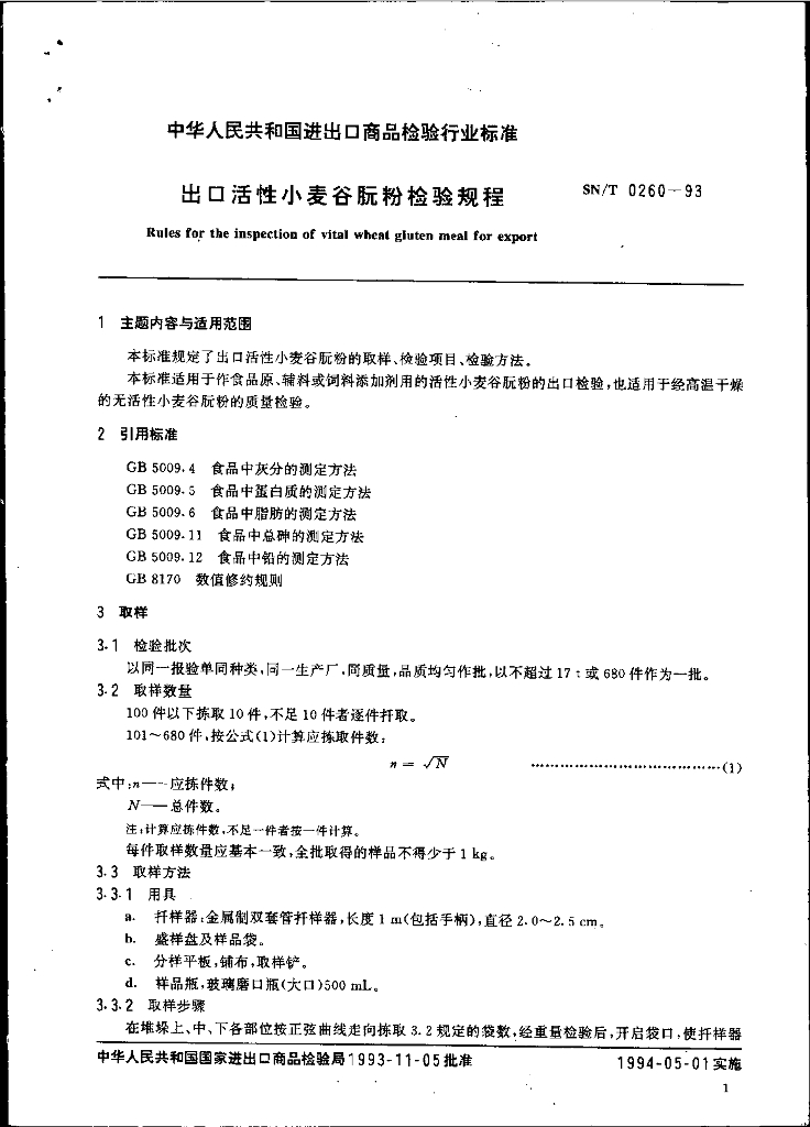 SN/T 0260-1993 出口活性小麦谷朊粉检验规程
