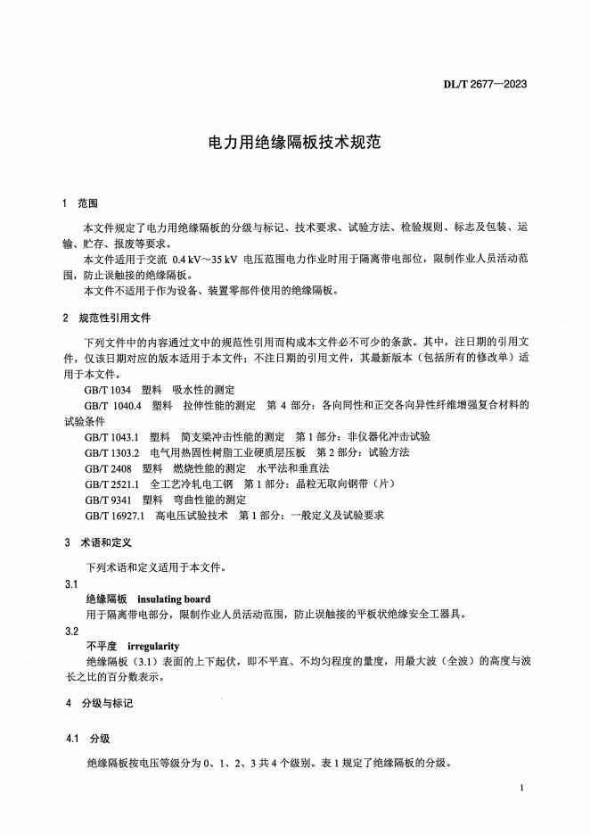 DL/T 2677-2023 电力用绝缘隔板技术规范
