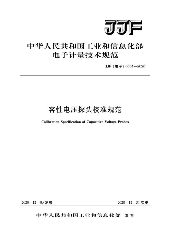JJF(电子)0051-2020 容性电压探头校准规范