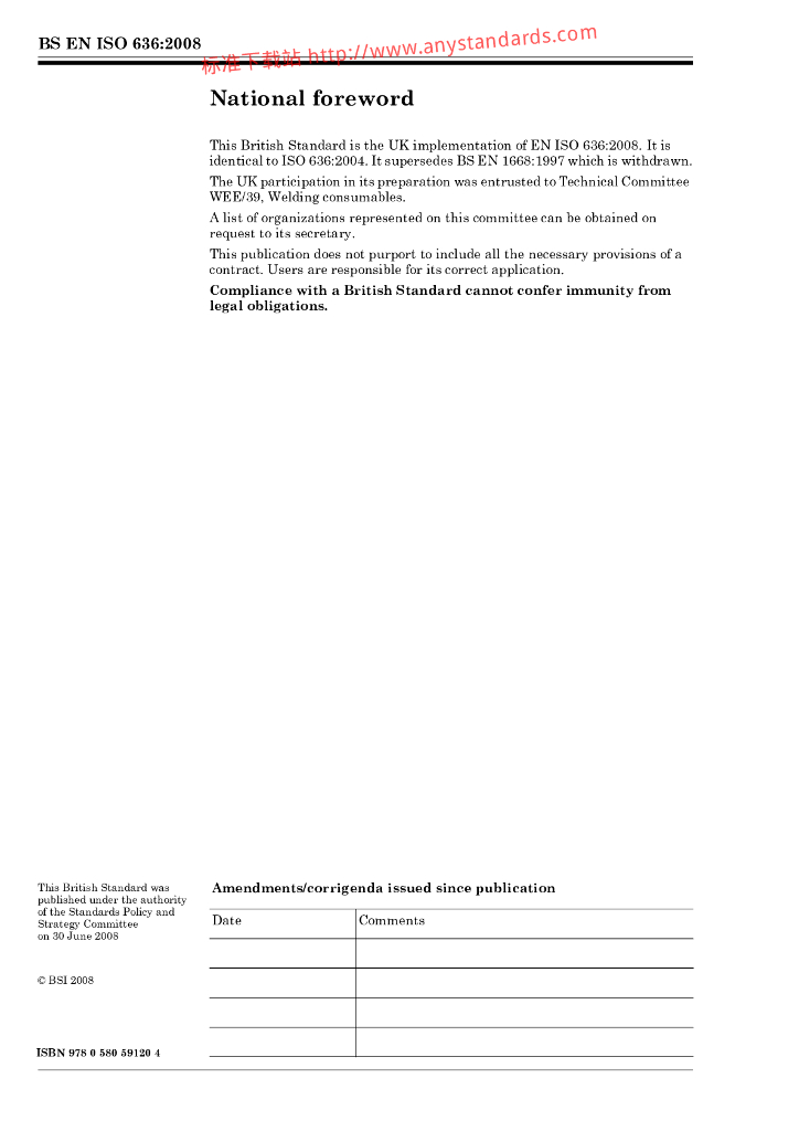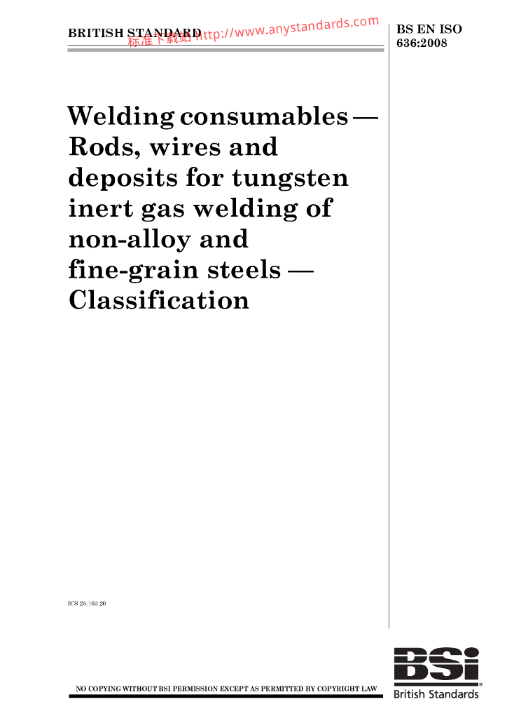 BS EN ISO 636-2008 焊接消耗品.非合金钢和细粒钢的钨惰性气体焊用焊条、焊丝和溶敷金属.分类