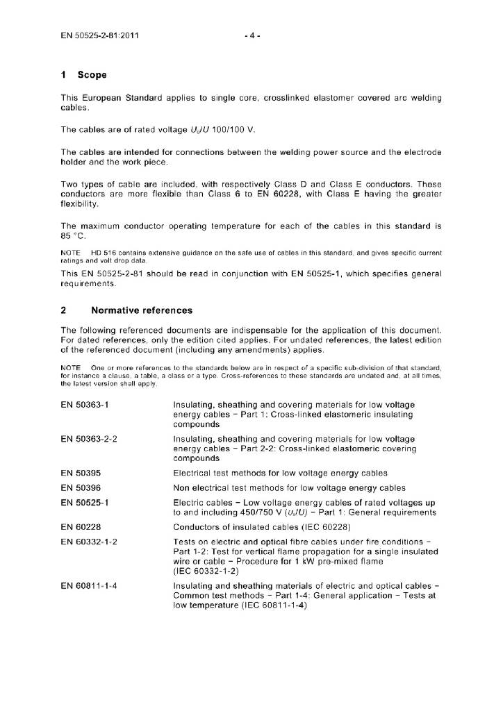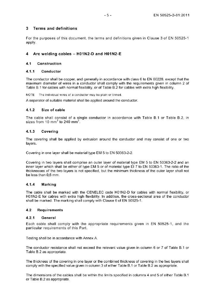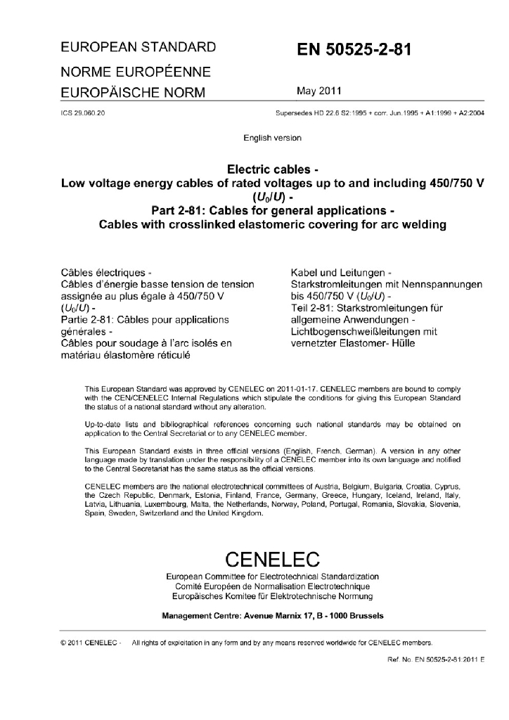 EN 50525-2-81:2011 额定电压450/750V及以下低压节能电缆 - 第2-81部分 通用电缆 - 电弧焊用带有交联弹性体护层的电缆