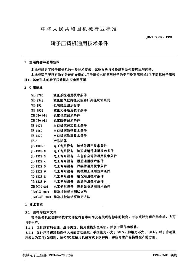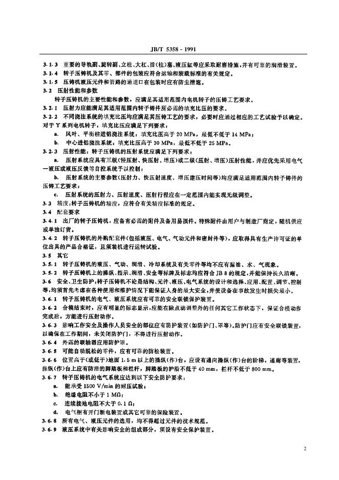 JB/T 5358-1991 转子压铸机 通用技术条件
