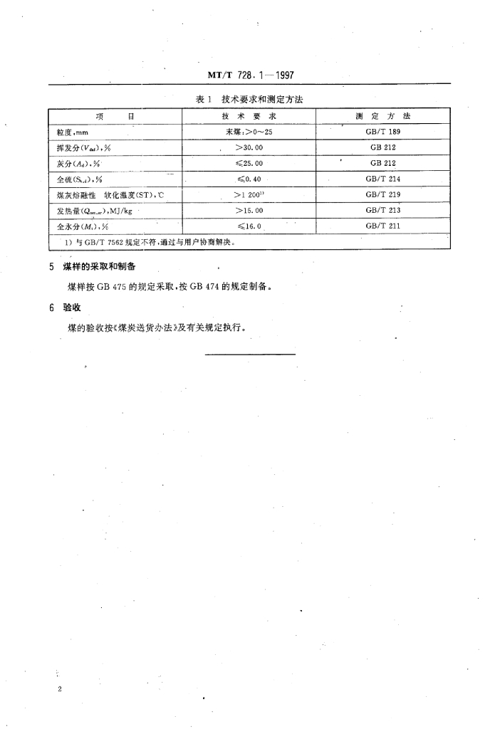 MT/T 728.1-1997 发电煤粉锅炉用大通矿务局煤技术条件