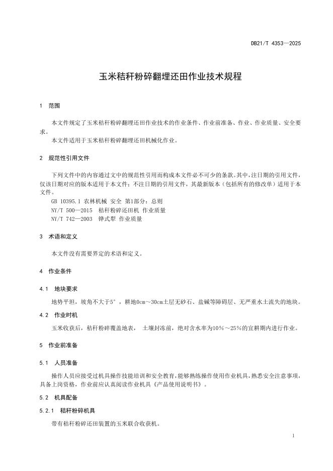 DB21/T 4353-2025 玉米秸秆粉碎翻埋还田作业技术规程