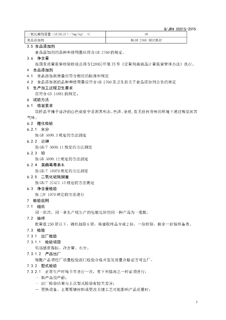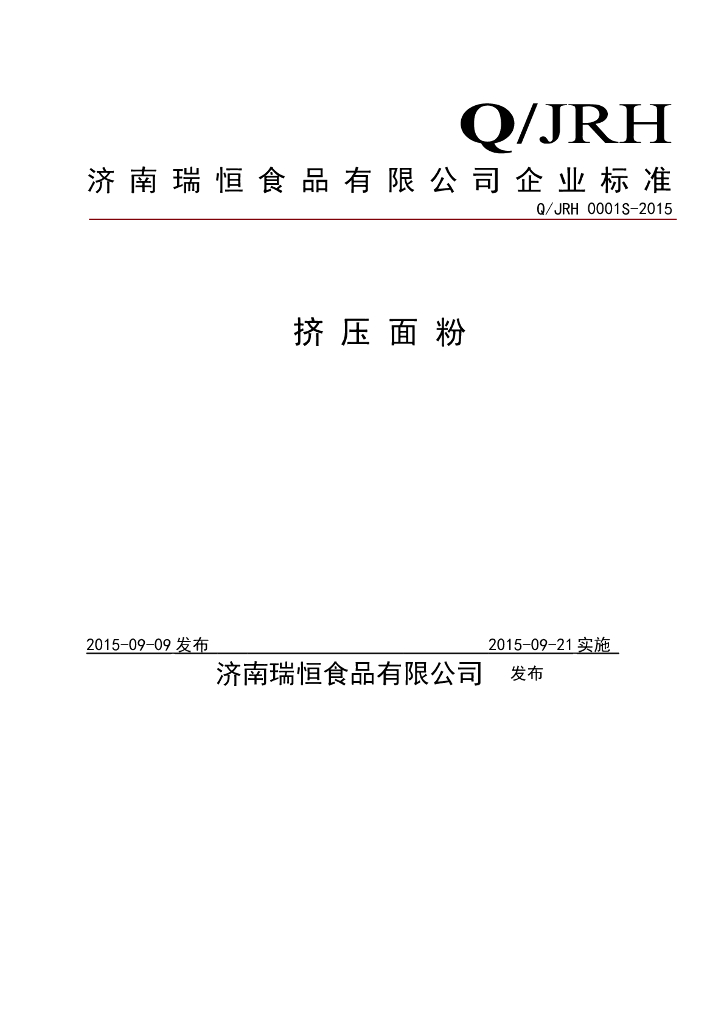 Q/JRH 0001S-2015 济南瑞恒食品有限公司 挤压面粉