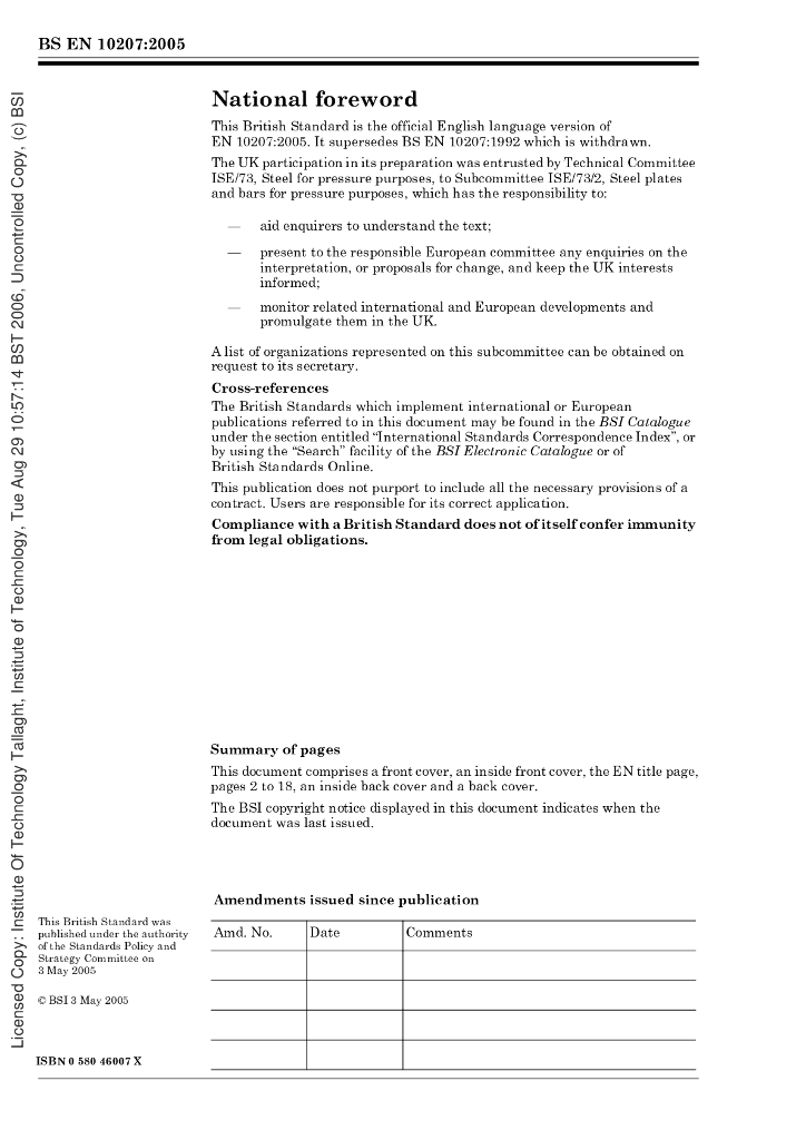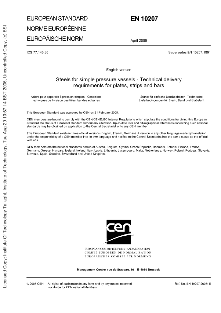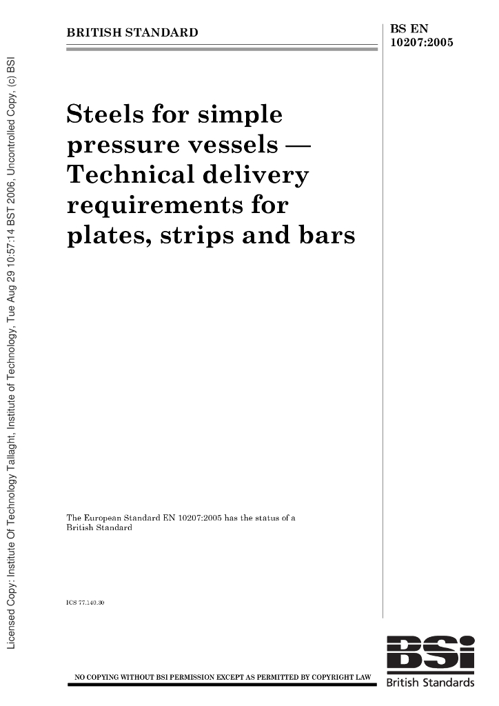 BS EN 10207-2005 简单压力容器用钢材.板材、带材和棒材交货技术要求(英文版)