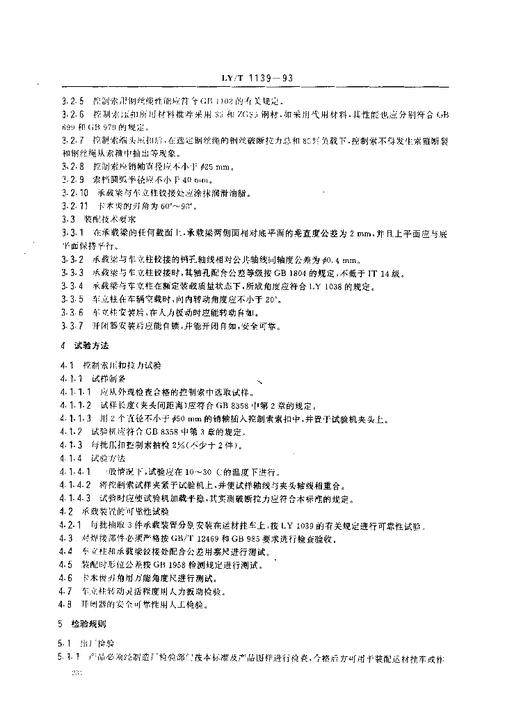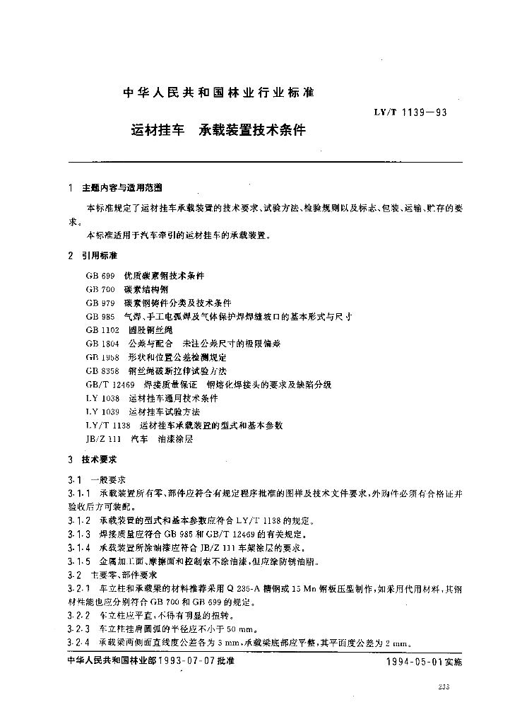 LY/T 1139-1993 运材挂车 承载装置技术条件