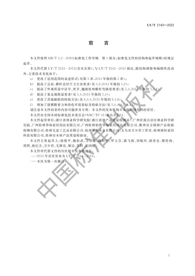 浙江省林业科学研究院(浙江省林产品质量检测站)、广西壮族自治区林业科学研究院、广西桂林华海家居用品有限公司、广西桂林怡凯华海家居用品有限公司、衢州市方圆林产品检验检测有限公司、桂林毛嘉工艺品有限公司、杭州振发木业有限公司、义乌市万少君工作室、桂林展际家居科技有限公司、桂林市木材产品质量检验站