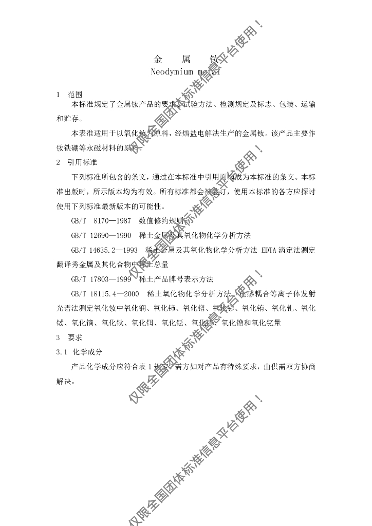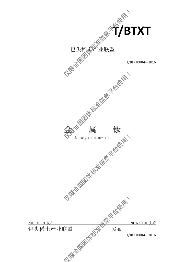 T/BTXT 0004-2016 金属钕