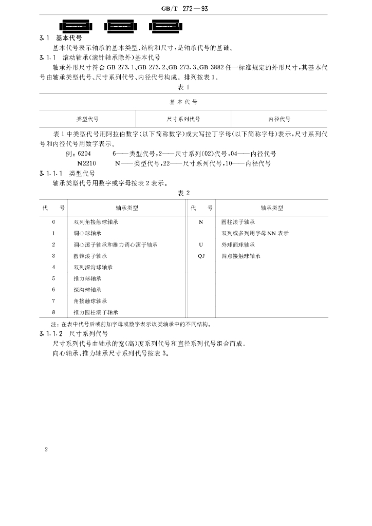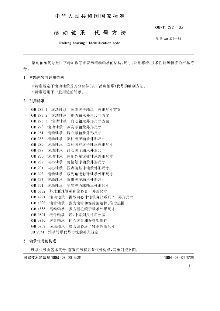 GB/T 272-1993 滚动轴承 代号方法