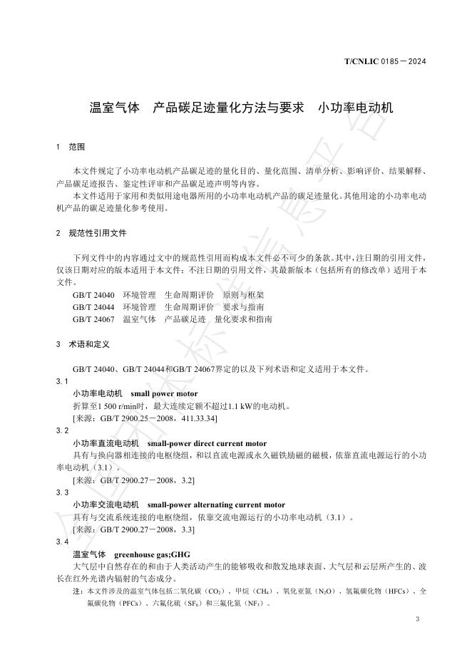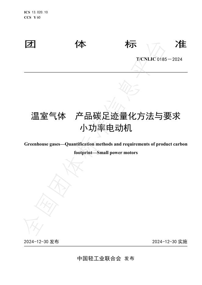 T/CNLIC 0185-2024 温室气体 产品碳足迹量化方法与要求 小功率电动机