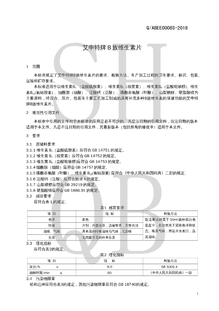 Q/ABEE 0008S-2018 艾申特牌B族维生素片