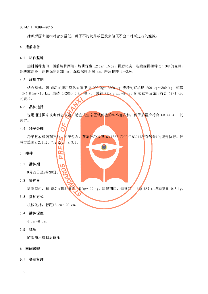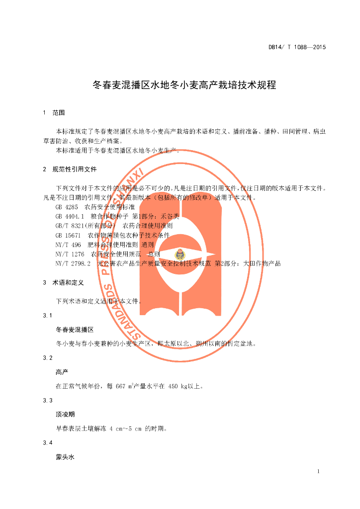 DB14/T 1088-2015 冬春麦混播区水地冬小麦高产栽培技术规程