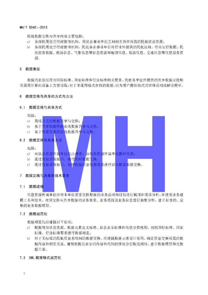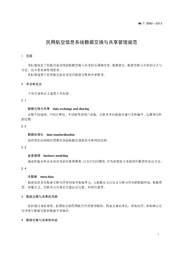 MH/T 0042-2013 民用航空信息系统数据交换与共享管理规范