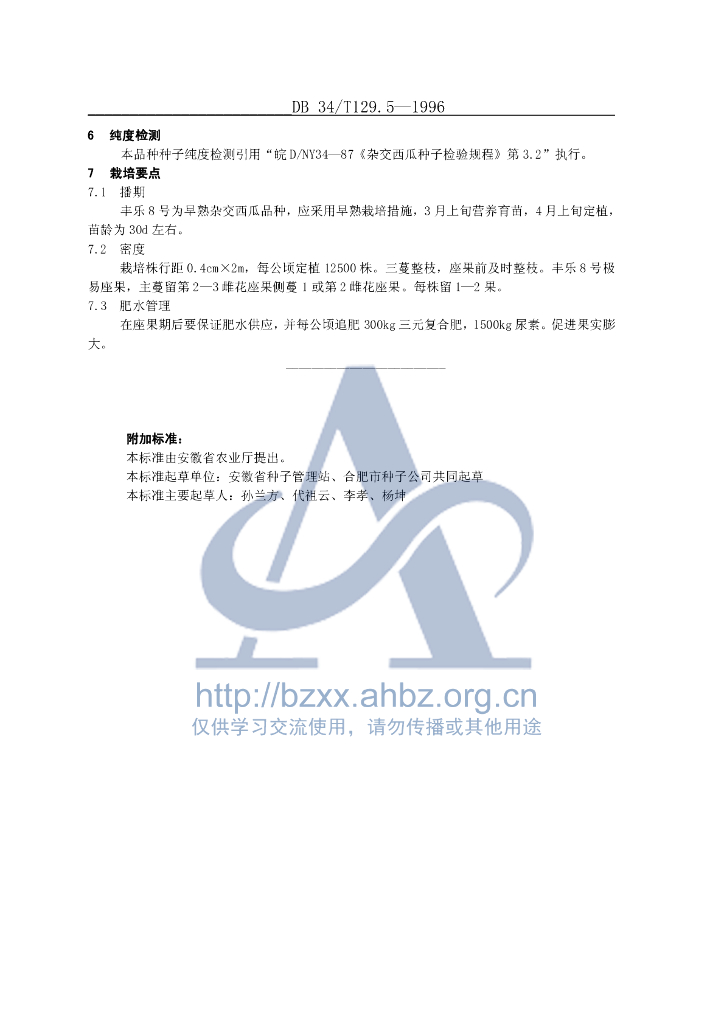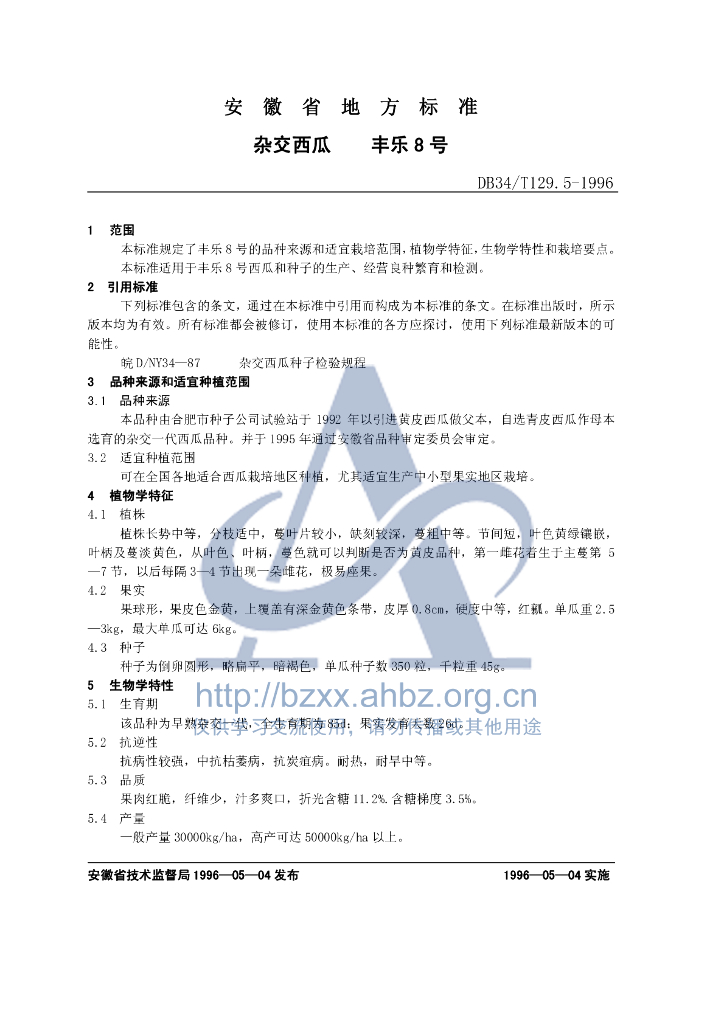 DB34/T 129.5-1996 杂交西瓜 丰乐8号
