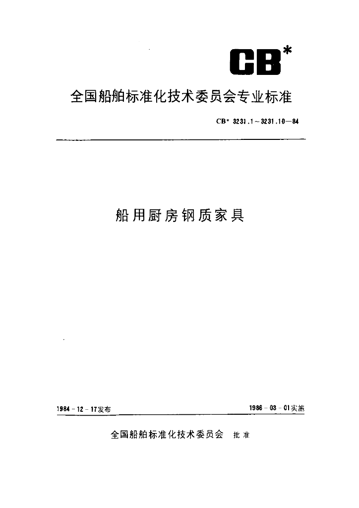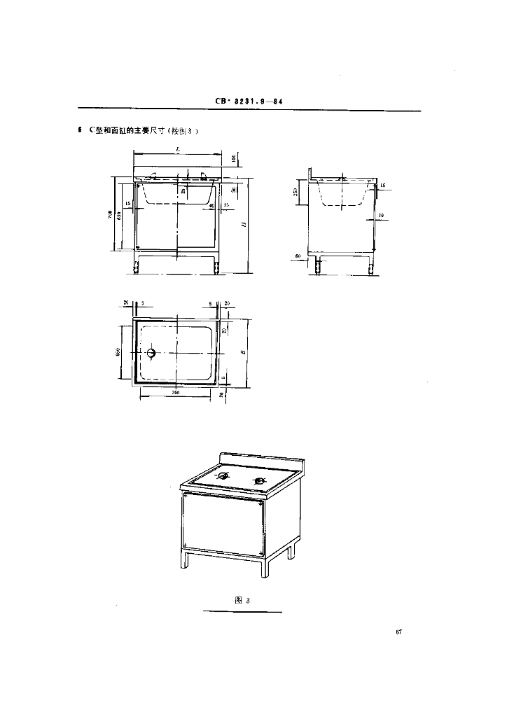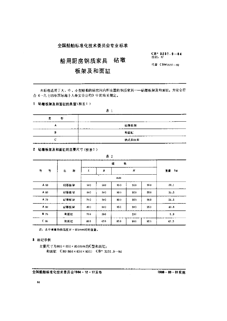 CB 3231.9-1984 船用厨房钢质家具 砧墩板架及面缸